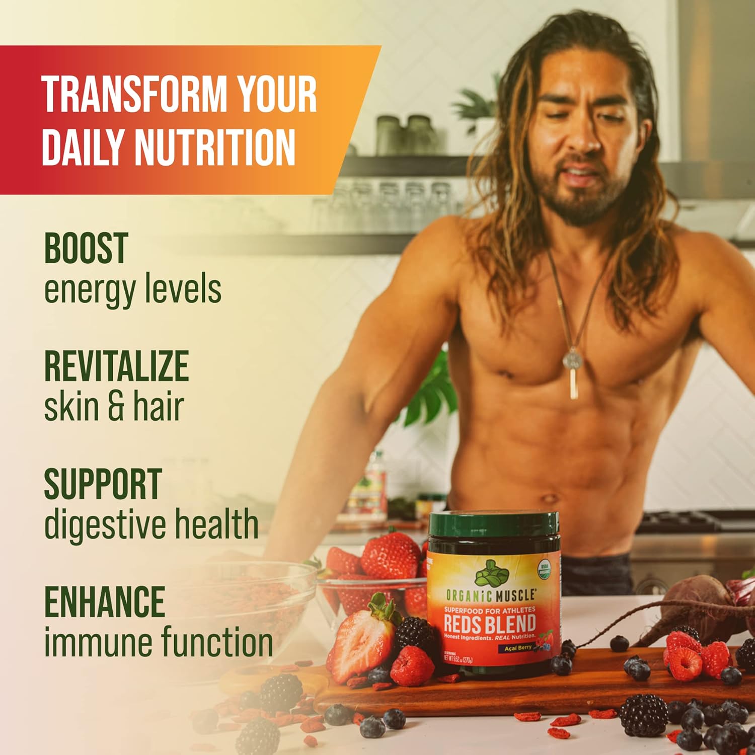 IMPROVE DIGESTION & GUT HEALTH: Discover radiant health with Organic Muscle’s Superfood Reds powder featuring a powerful blend that will help you feel your best! Each serving supports digestion, metabolism, and the immune system. Start your day with a refreshing Acai Berry flavor.